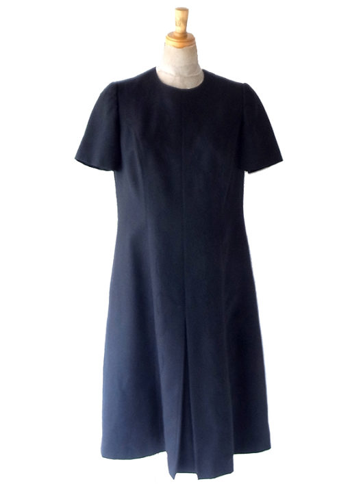 【送料無料】70年代フランス製 ネイビー X ペイズリー柄 ベルベットカラー ギャザー ヴィンテージ ワンピース 26FC003【ヨーロッパ古着】